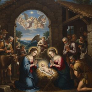 Na tranquila aldeia de Nazaré, vivia uma jovem mulher chamada Maria. Sua vida era simples, mas seu coração era cheio de fé. Certa noite, enquanto ela orava, a luz do céu encheu o seu quarto. Um anjo apareceu, radiante e majestoso, dizendo: “Salve, agraciada! O Senhor está contigo. Não temas, Maria, pois achaste graça diante de Deus. Conceberás e darás à luz um filho, e lhe chamarás Jesus. Ele será grande, filho do Altíssimo, e o seu reino jamais terá fim”. Maria tremeu e sussurrou: “Como pode ser isso, se não conheço homem algum?“. O anjo respondeu: “O Espírito Santo virá sobre ti e o poder do Altíssimo te cobrirá com a sua sombra. O menino que há de nascer será santo, Filho de Deus”. Maria respondeu: “Eis aqui a serva do Senhor; cumpra-se em mim segundo a tua palavra”. Quando o anjo partiu, o coração de Maria estava cheio de admiração. O maior segredo do céu agora crescia dentro dela.