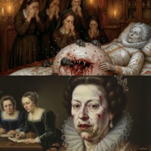 A revelação destruiu Elizabeth por dentro. Os documentos da época, preservados nos arquivos reais, descrevem como a rainha, normalmente tão controlada, começou a se recusar a comer. Robert Cecil, seu secretário de estado, registrou em suas cartas privadas que Elizabeth passou dias sem proferir uma palavra, permanecendo de pé por horas, olhando para o nada. Quando finalmente falou, repetiu apenas uma frase: “Devo partir, devo partir?”. Mas Elizabeth Tudor não partiu tranquilamente. O que se seguiu foi uma agonia prolongada que chocaria até os observadores mais destemidos de sua época. A rainha, que sempre havia sido obcecada por sua aparência e reputação, começou a apresentar sintomas alarmantes. Suas damas de companhia registraram que ela desenvolvia feridas abertas em sua pele, que sua boca começou a inchar de forma grotesca e que um cheiro pútrido emanava de seu corpo.