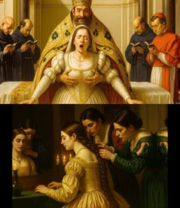 Uma mão pálida, seca como os ossos dos mortos, surgiu subitamente de debaixo da cama, dedos longos e sinuosos tocaram levemente o tornozelo de Flavia e subiram pela sua panturrilha. Ela quis gritar, mas sua garganta parecia cheia de cinzas. Roma a ensinara que o grito de uma mulher era inútil, e nesta noite, aquela regra tornara-se uma maldição real. O quarto começou a girar, o espaço parecendo dobrar-se sob o peso dos espíritos presentes. As paredes de pedra rachadas expeliam um líquido escuro e espesso, com cheiro de ferrugem. Era sangue — o sangue das noivas anteriores, aquelas que morreram em silêncio ou enlouqueceram em quartos fechados como este.