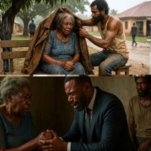 Quando ela virou seus olhos fracos para ele, algo dentro dele se quebrou. Sem dizer uma palavra, Benjamin tirou seu casaco marrom, a única coisa que ele tinha para se aquecer à noite, e o envolveu em seus ombros. Ela engasgou suavemente enquanto o calor tocava sua pele fria. Seus dedos agarraram o casaco como se fosse a única coisa segura que restava no mundo. Benjamin ajoelhou-se à sua frente. “Mãe, deixe-me levá-la para casa,” ele disse baixinho. “Eu… eu não consigo andar,” ela sussurrou. “Eu a carrego.” Ele deslizou os braços por baixo do corpo dela e a levantou. Ela era tão leve que ele sentiu os ossos em suas costas. As pessoas olharam novamente. Alguns balançaram a cabeça. Alguns sussurraram: “Benjamin não tem medo.” Alguns até riram. Mas Benjamin não parou.
